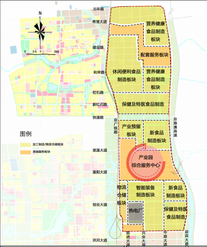 《中国(驻马店)国际农产品加工产业园规划》以驻马店市城市总体规划确定的中心城区东北侧城市建设用地、遂平县县城总体规划确定的东侧城市建设用地以及两者之间的连接区域,打造“一心、多板块”的空间结构。“一心”指综合服务中心,是集聚综合服务、企业总部、商业酒店、商务办公、金融服务、创意产业、公园广场为一体的多功能复合区。“多板块”包括高端制造业的营养健康食品制造板块、休闲便利食品制造板块、保健及特医食品制造板块、新食品制造板块、智能装备制造板块,以及高端服务的科技研发和国际贸易板块、物流仓储服务板块。2019年4月,规划成果经市人民代表大会常务委员会通过。2019年9月举办的22届“中国农产品加工工业投资贸易洽谈会”国际农产品加工业产业园项目签约仪式上,10个项目成功签约,意向总投资131.7亿元。
