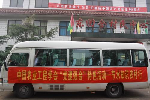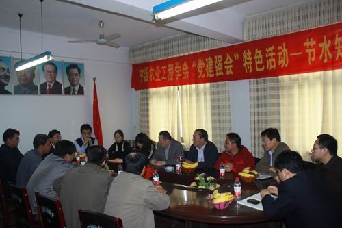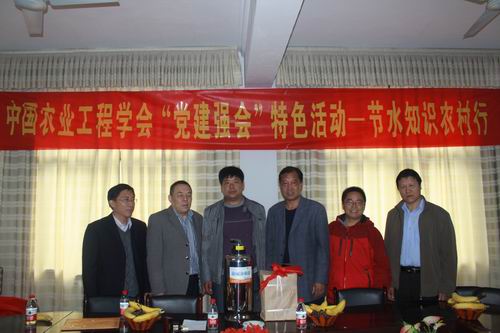 本次学习活动得到了中国农业工程学会秘书处的大力支持。10月9日,信息中心党支部和学会秘书处的同志一起来到了平山县回舍镇开展了“节水知识农村行” 活动。全体成员与东回舍村党支部成员进行了用水安全、节水技术等方面的座谈,向东回舍村赠送了一台除氟净水器和大量节水知识方面书籍、挂图等。座谈结束后,全体成员参观了该村的农户,并现场为农民朋友们发放了节水方面的宣传资料。