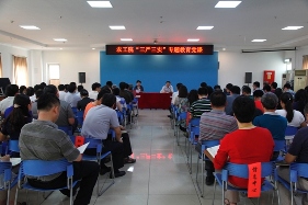 根据中央的统一部署和部党组的安排,按照我院《关于在处以上领导干部中开展“三严三实”专题教育的实施方案》,5月25日,院党委召开“三严三实”专题教育动员部署会。院党委李伟方书记作了题为《深入贯彻从严治党的要求,从严从实开展“三严三实”专题教育》的党课,就:充分认识开展“三严三实”专题教育的重要意义、深刻领会“三严三实”的丰富内涵、切实查摆“不严不实”的突出问题、积极践行“三严三实”的具体要求、从严从实开展专题教育等五个方面作了深入系统的讲解。院党委李玉荣副书记主持了会议。