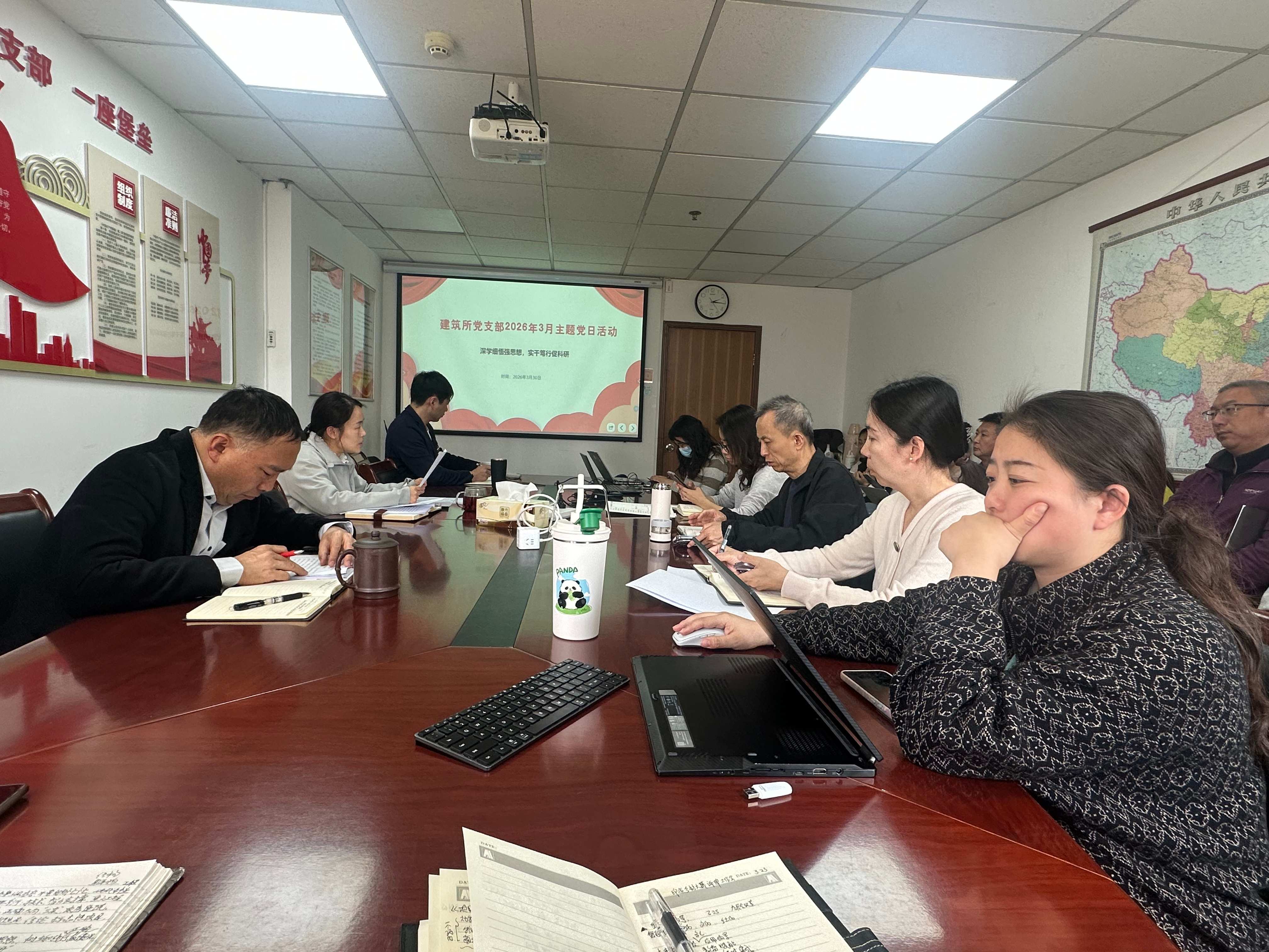 为进一步提升全所科研人员专业素养与履职能力,增强科研与规划双向赋能,2026年3月30日下午,建筑所党支部开展“深学细悟强思想,实干笃行促科研”主题党日活动。活动由支部书记毛翔飞主持。