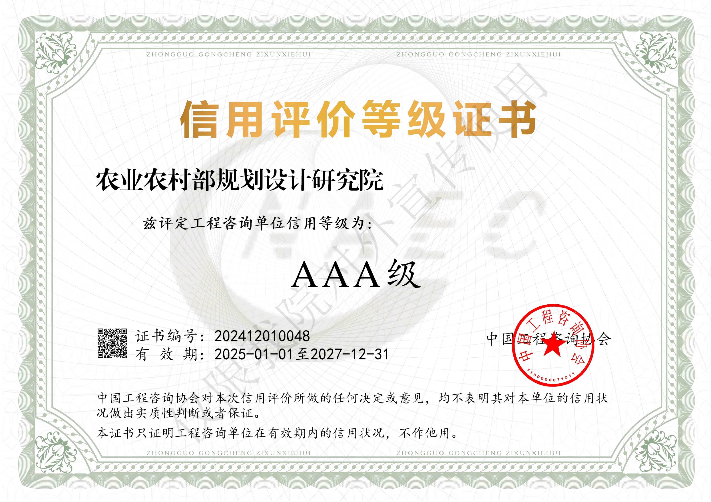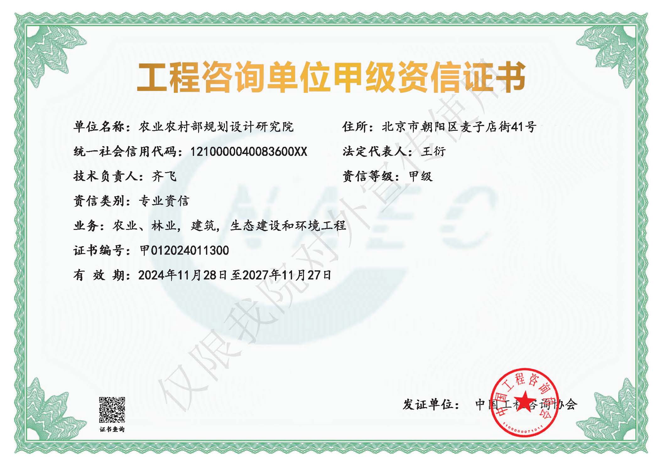 工程咨询甲级咨信证书