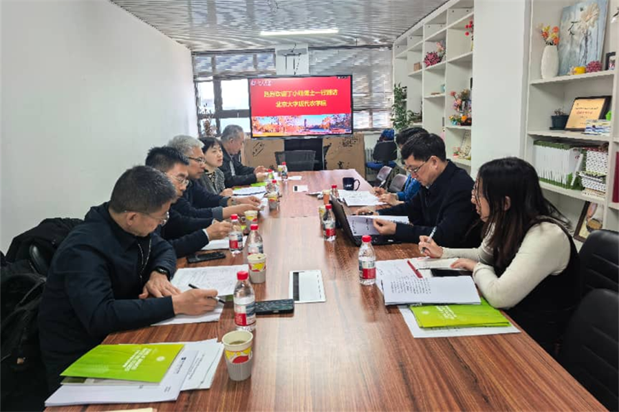 2026年2月12日下午,我院首席科学家丁小明研究员带队访问北京大学现代农学院,并开展工作交流座谈。随行人员包括人事处处长郭君、规划所所长李树君、区域所所长蔡学斌、设施所所长高峰等。北京大学现代农学院院长黄季焜、副院长刘承芳及行政职员黄佩璇参加座谈。座谈会由黄季焜院长主持。