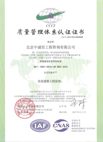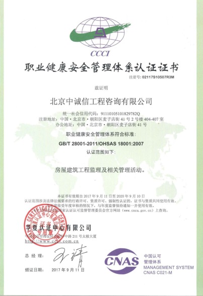2017年9月4日至2017年9月6日,我院中诚信工程咨询有限公司的质量管理体系GB/T 19001-2016/ISO 9001:2015、环境管理体系GB/T 24001-2016/ISO 14000:2015和职业健康安全管理体系GB/T 28001-2011/OHSAS 18001:2007进行了再认证审核。其中质量管理体系与环境管理体系为转版审核。经过3天的严格审核,中诚信公司各管理体系满足新版标准要求,顺利通过审核并取得了相关认证证书。