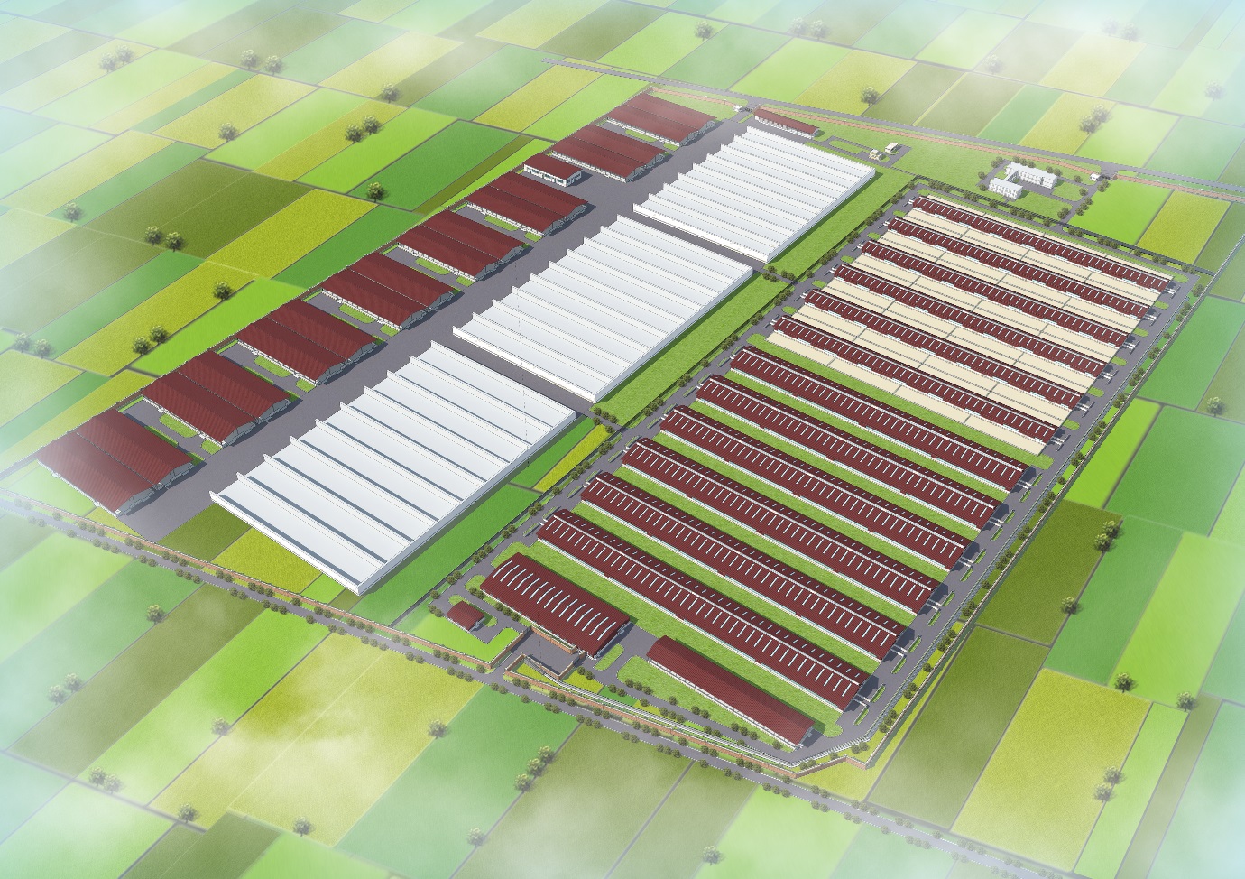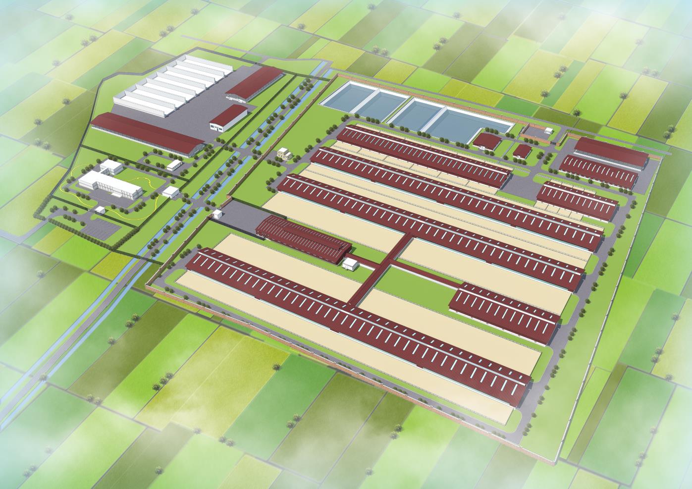 良种培育示范中心主要建设生态养殖犊牛舍、饲草加工间、饲草料库、诊疗室及无害化处理间、发酵车间、综合办公楼、宿舍食堂、锅炉房、门卫和消毒更衣间等设施。良种培育示范中心存栏断奶犊牛1500头,年出栏3~4批;年加工饲草10万吨。总用地面积约263.5亩,总建筑面积约41600平方米。