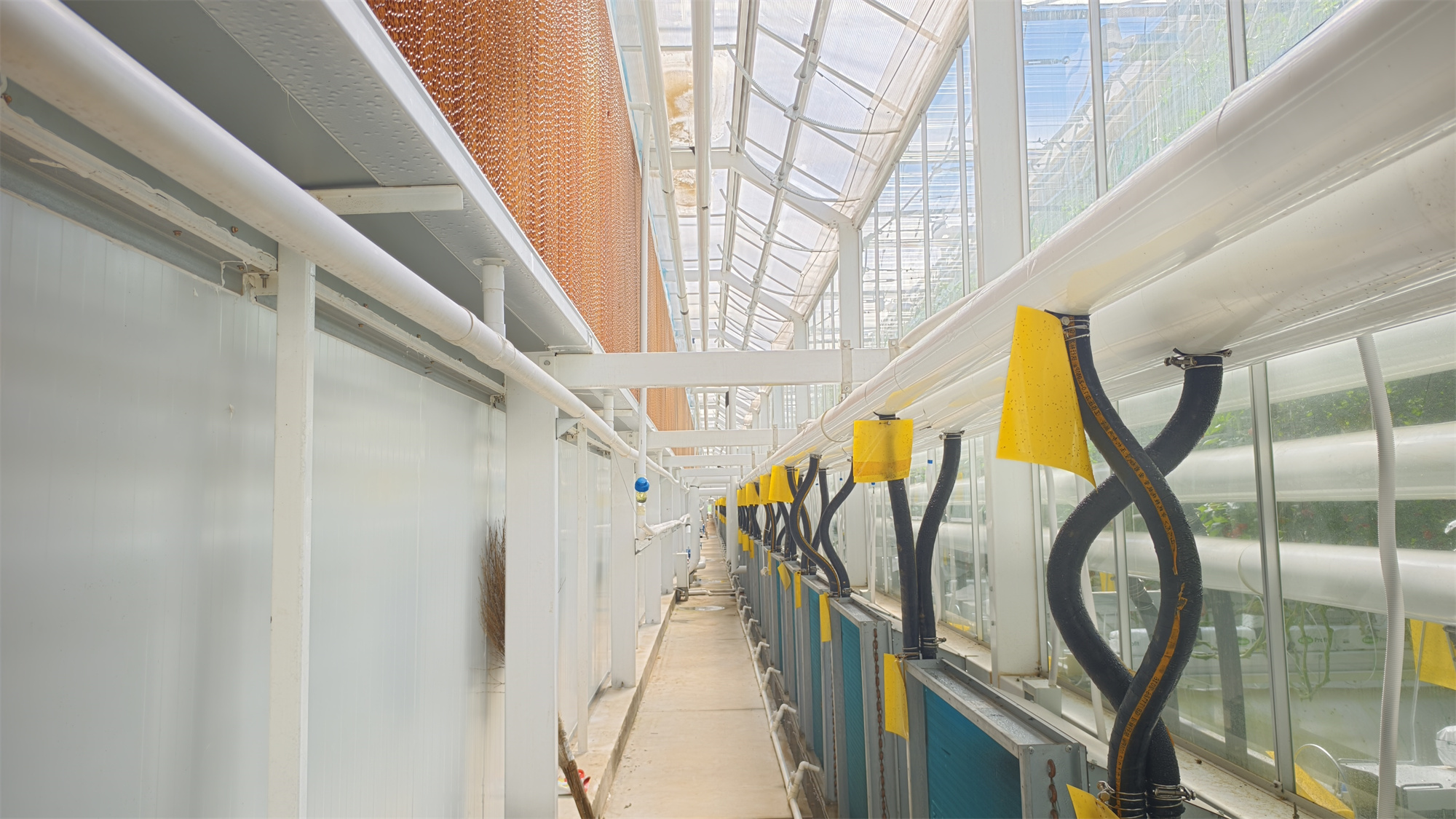 近年来,半封闭式连栋温室在我国广泛应用,经“气配方”组合后的混合气体经正压送风管道可均匀输送到100m以外的种植区域,显著提高了土地利用率。我院设施农业研究所聚焦影响空气流动特性的新型混流室构建及结构设计、穿孔管道关键参数方法确定及优化开展研究,形成集成应用策略并推广应用,提升了我国半封闭式连栋温室建设水平。