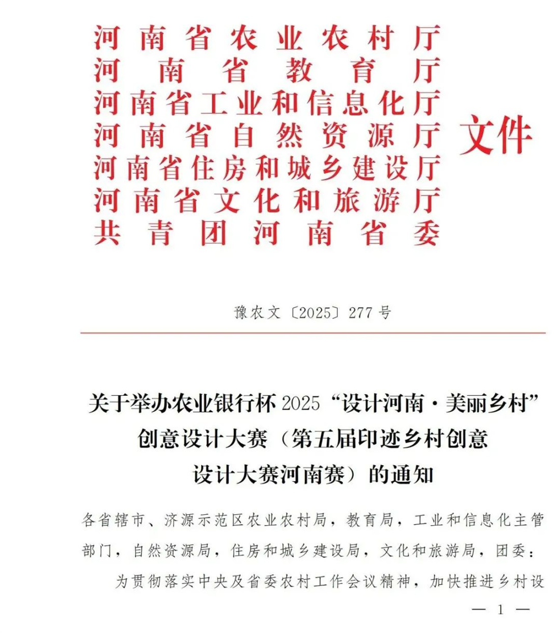 关于举办农业银行杯2025“设计河南 美丽乡村”创意设计大赛(第五届印迹乡村创意设计大赛河南赛)的通知