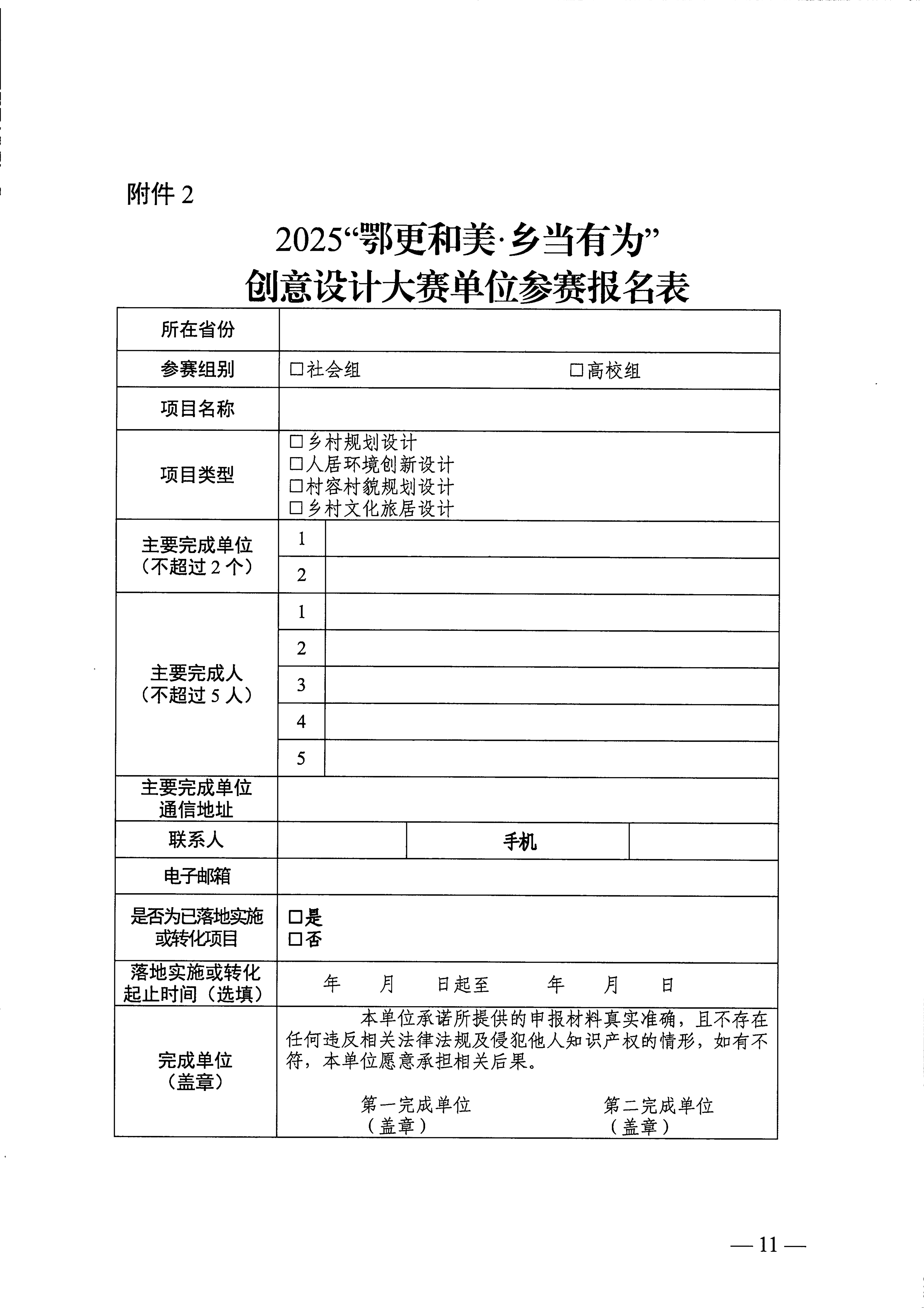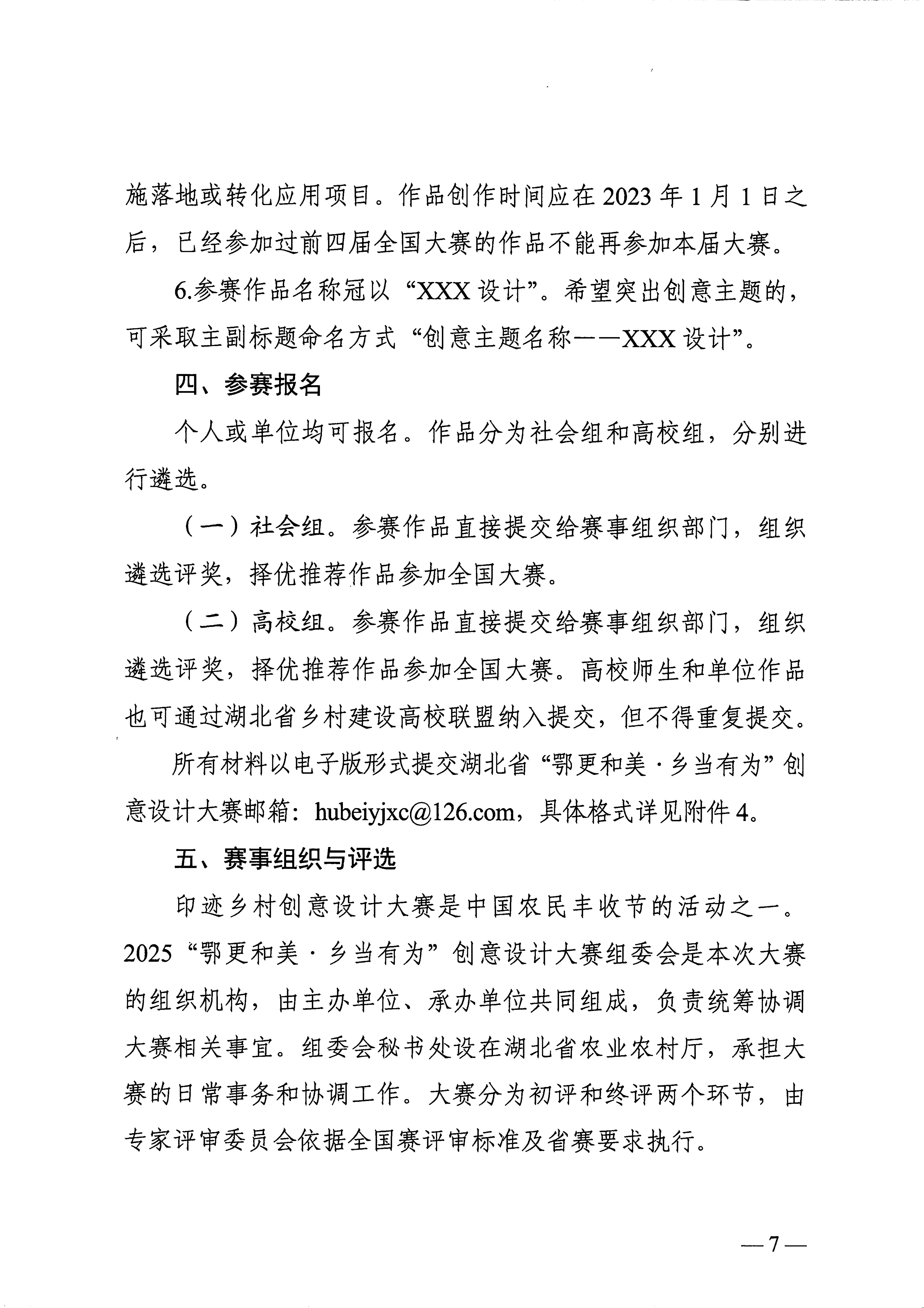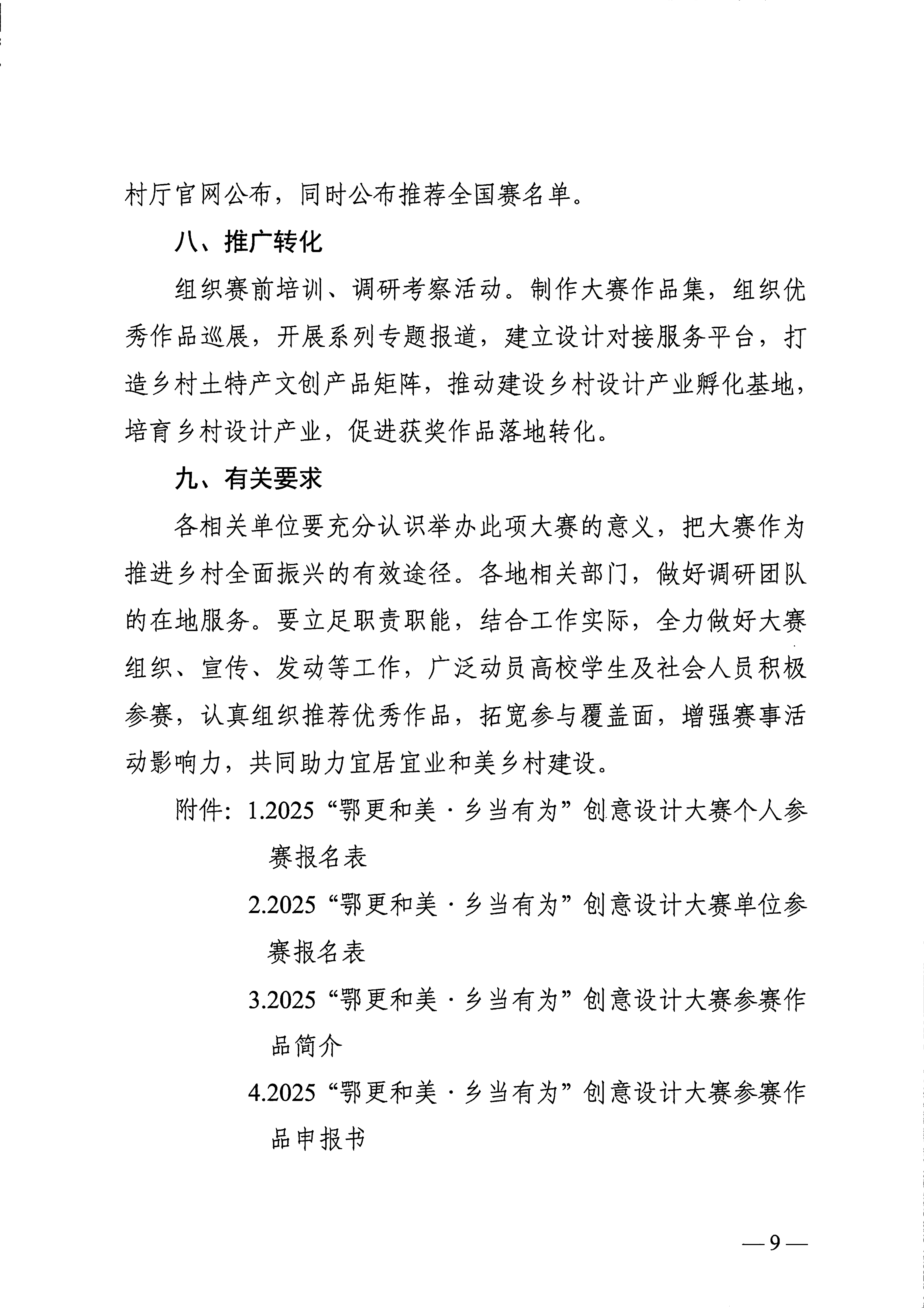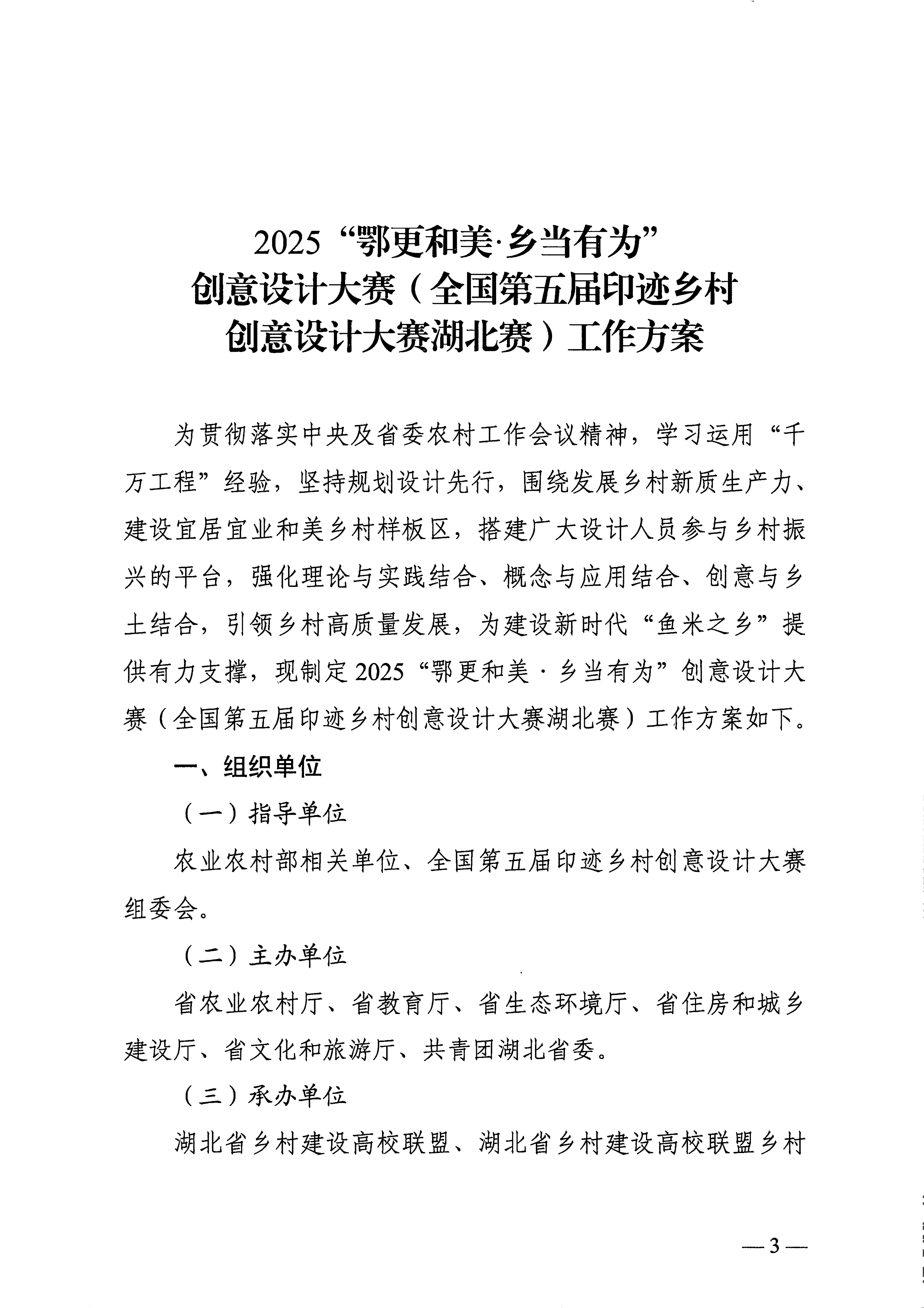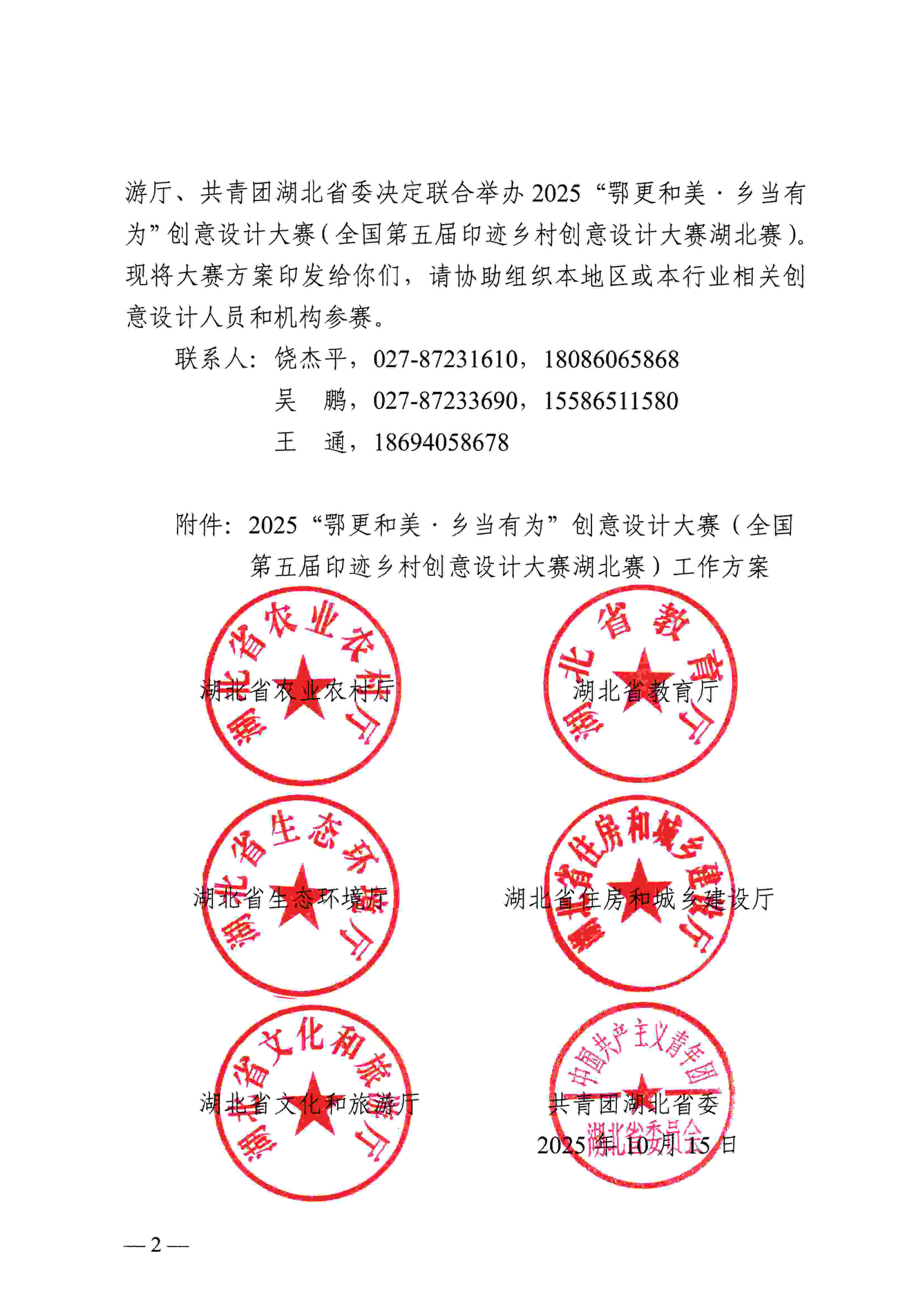 关于举办2025“鄂更和美·乡当有为” 创意设计大赛(全国第五届印迹乡村创意 设计大赛湖北赛)的通知