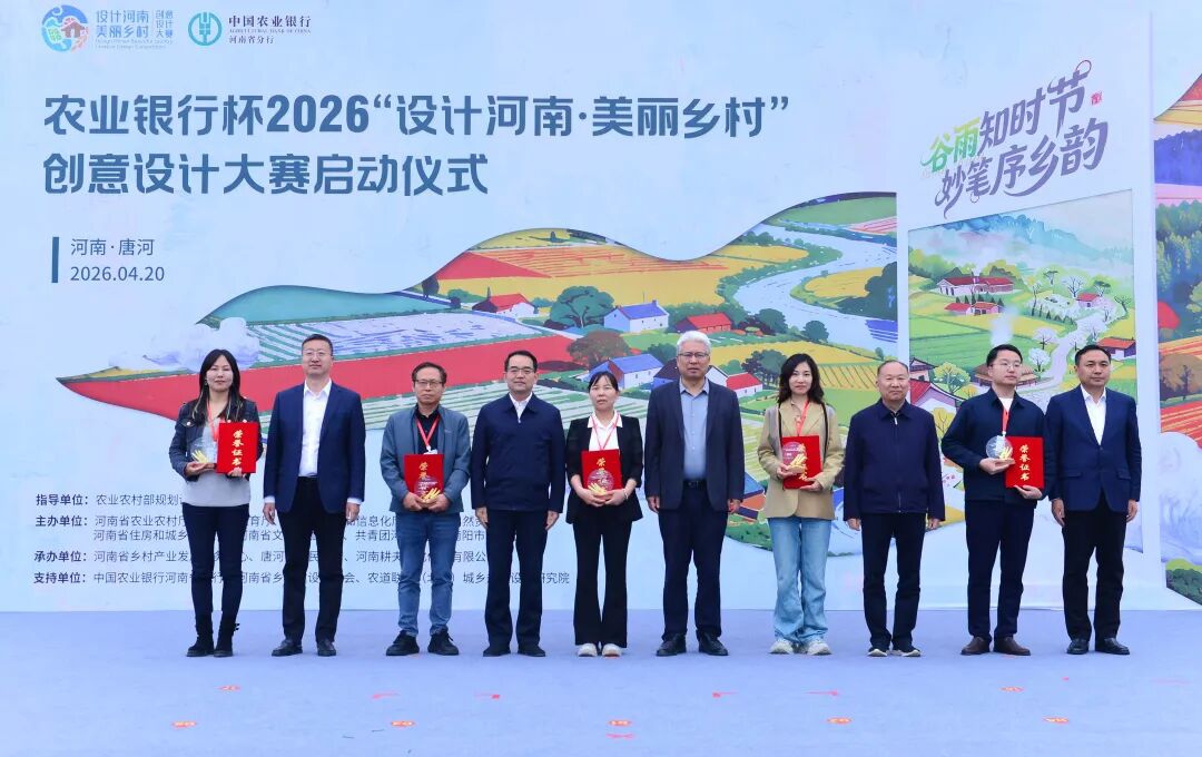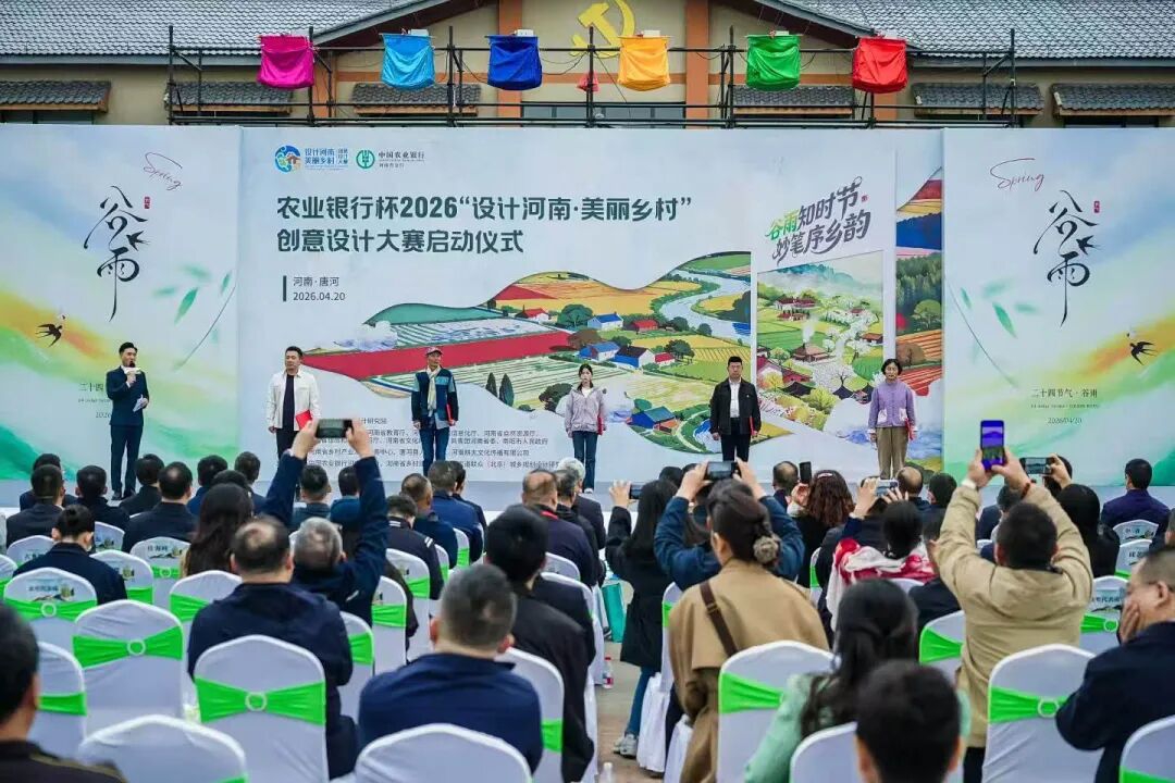 4 月 20 日,恰逢谷雨节气,农业银行杯2026“设计河南・美丽乡村” 创意设计大赛,在南阳市唐河县王庄村启动。省内外专家学者、设计精英、高校师生及乡村建设者代表齐聚一堂,以创意为笔、以乡土为卷,共赴一场设计赋能乡村振兴的春日之约。